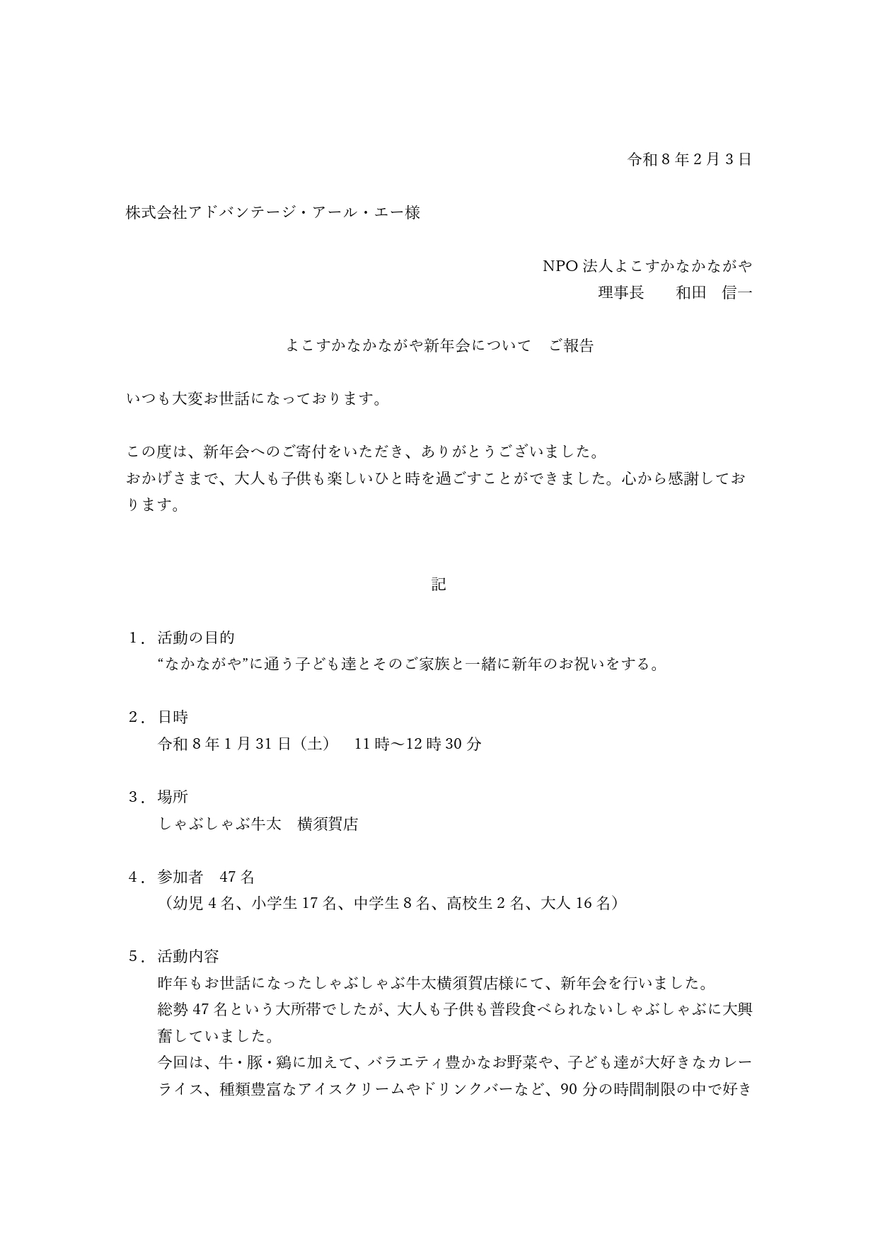 弊社では、持続可能な開発目標(SDGs)に賛同し、活動を続けております。 この度、NPO法人 よこすかなかながや様へ寄附を行いましたので報告致します。
