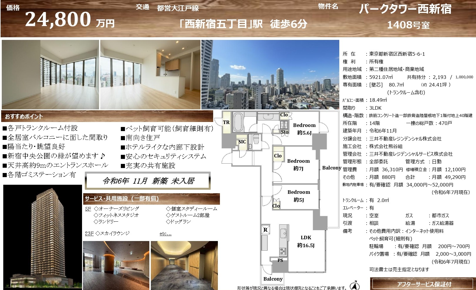 都営大江戸線『西新宿五丁目』駅徒歩6分/東京メトロ丸ノ内線『西新宿』駅徒歩10分/山手線『新宿』駅徒歩18分