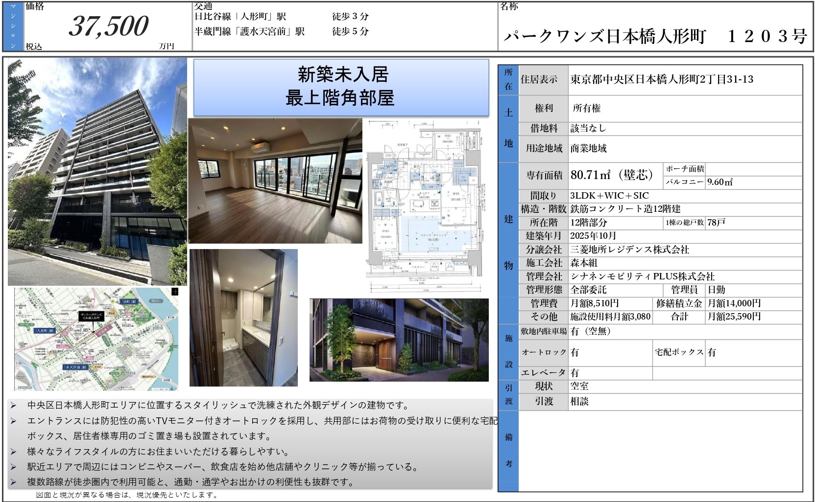 物件名 ザ・パークワンズ日本橋人形町